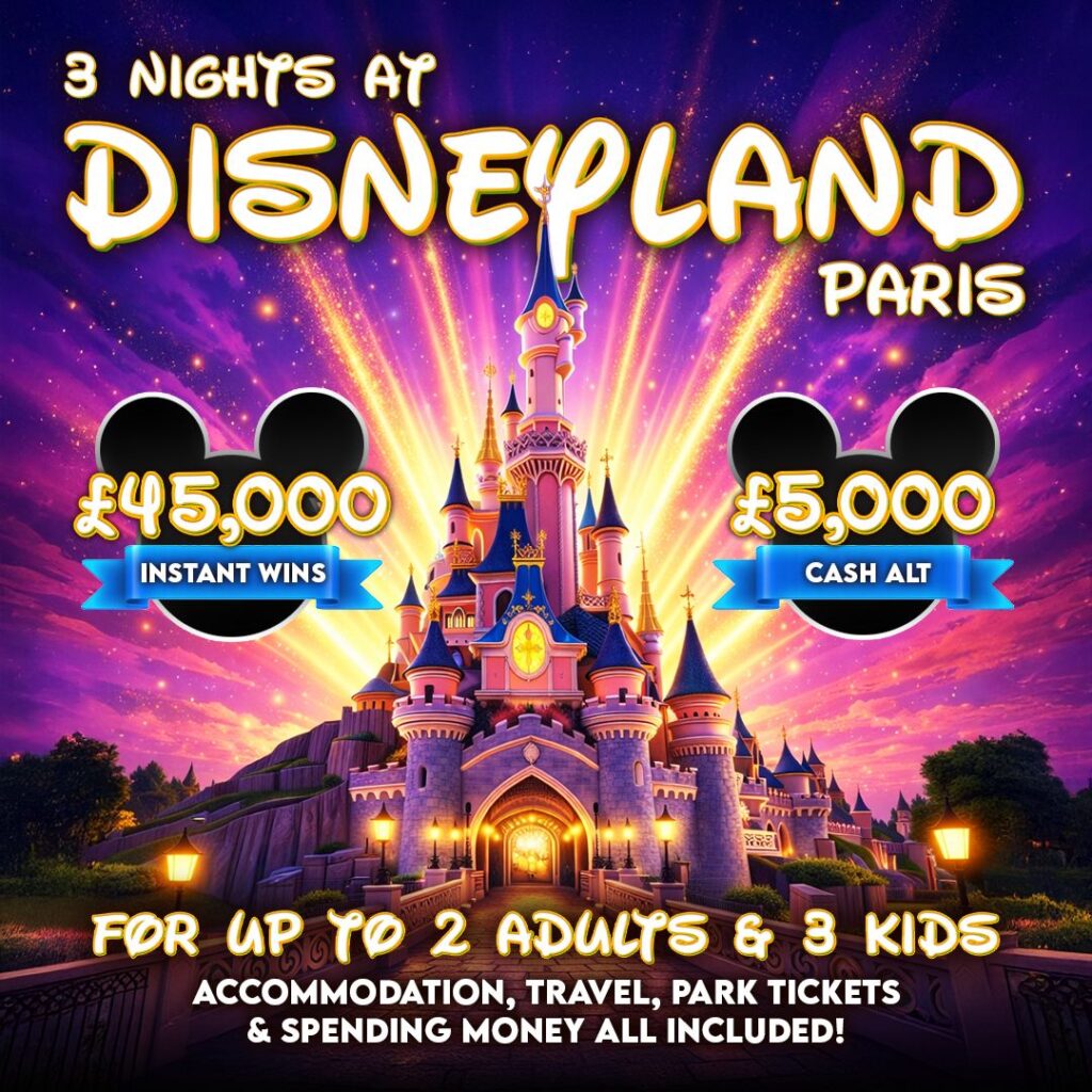 🚨 WIN £200 WORTH OF ENTRIES INTO OUR DISNEYLAND PARIS OR £5K HOLIDAY OR £5K CASH COMPETITION 🚨 £0.49 PER ENTRYEnter Now21% Sold205/1000 -